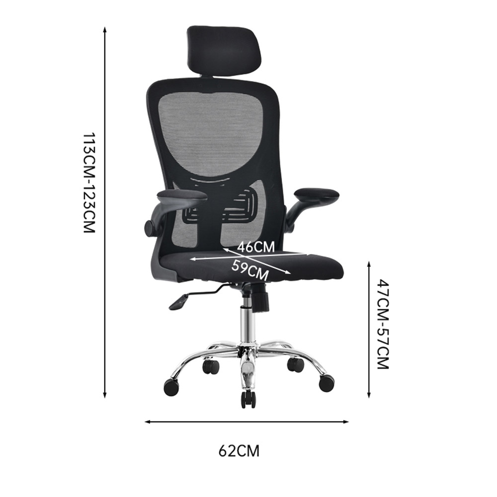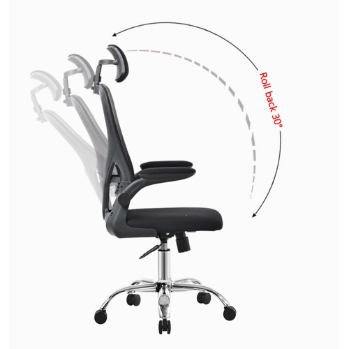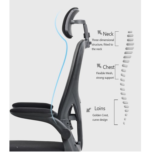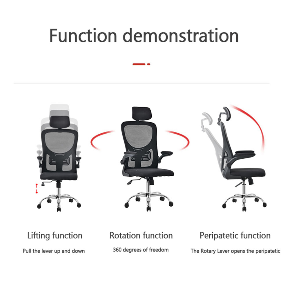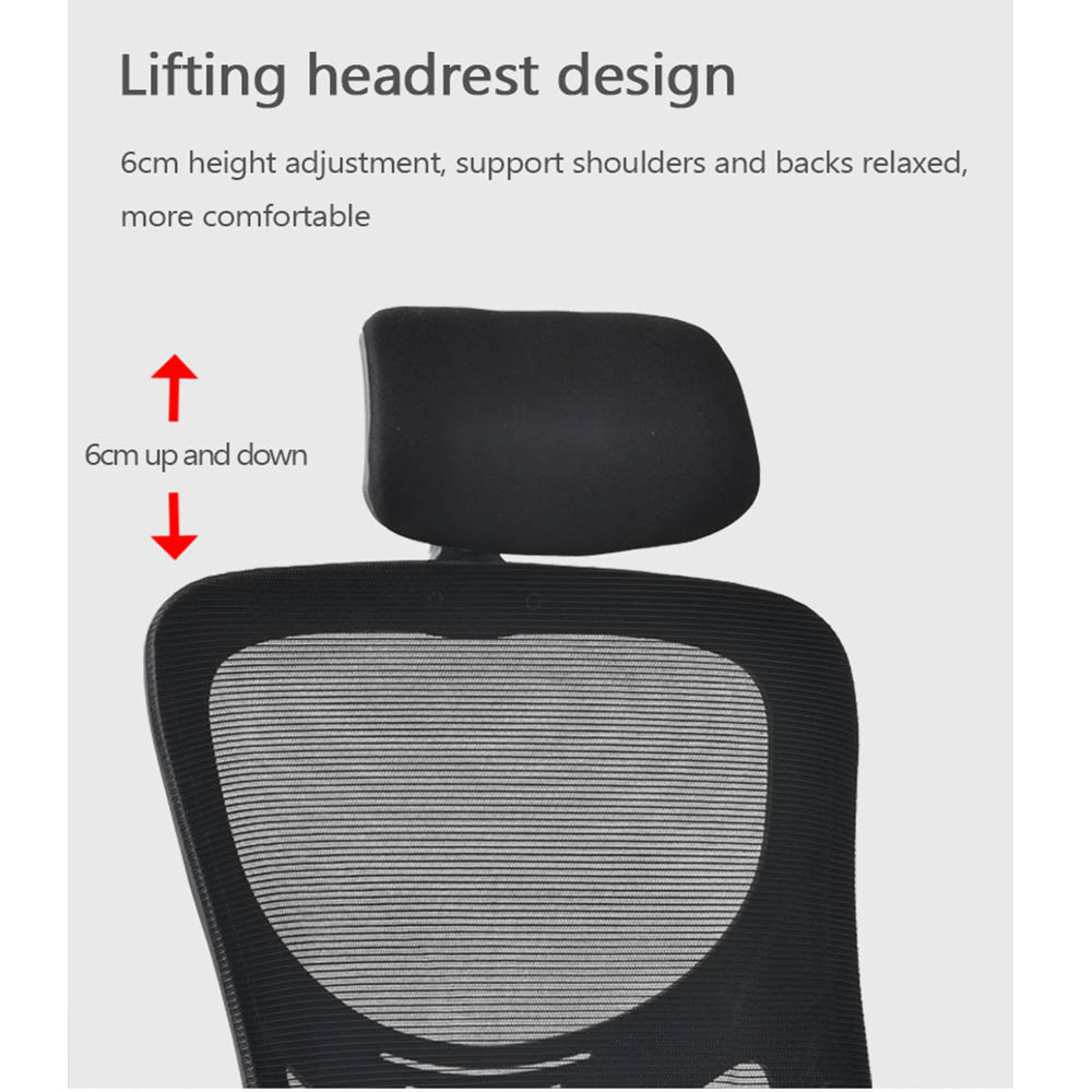 Funkcionalna radna stolica sa naslonom od mrežastog materijala i naslonom za glavu.