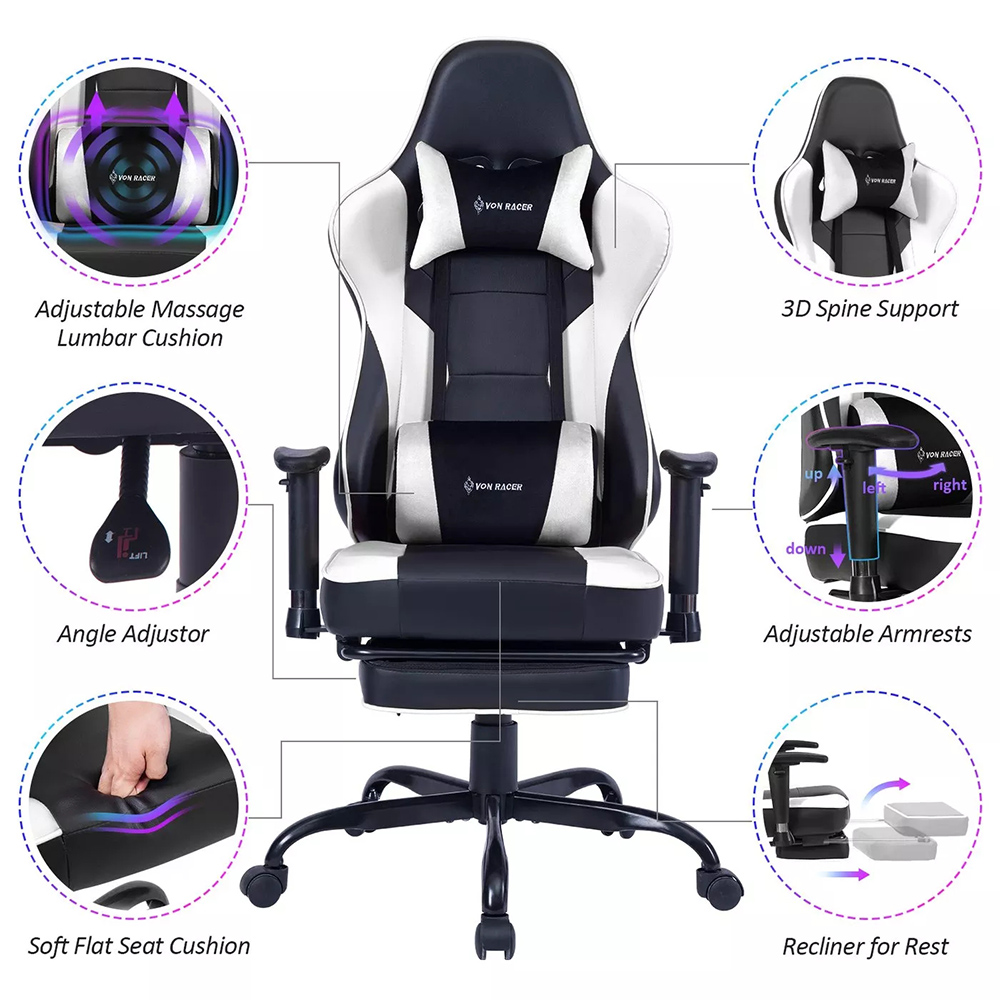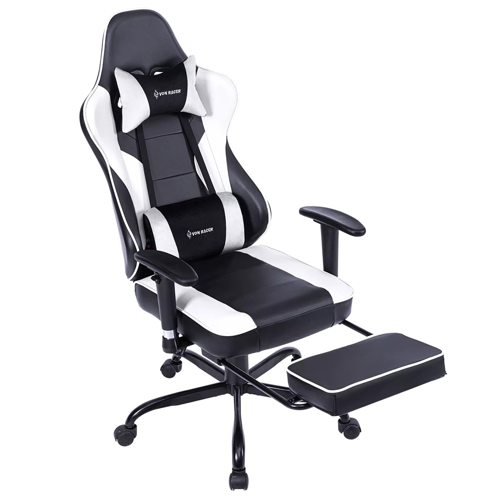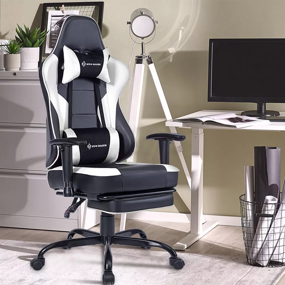 Kompjuterske stolice VON Racer 8280 u crnoj-beloj kombinaciji boja sa vibracionim lumbalnim masažerom.