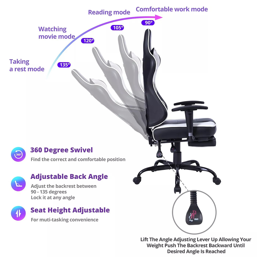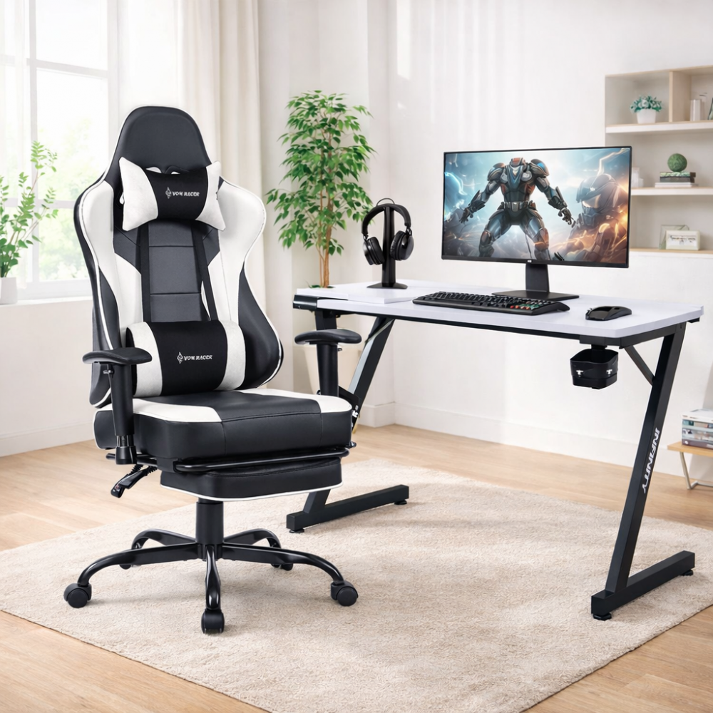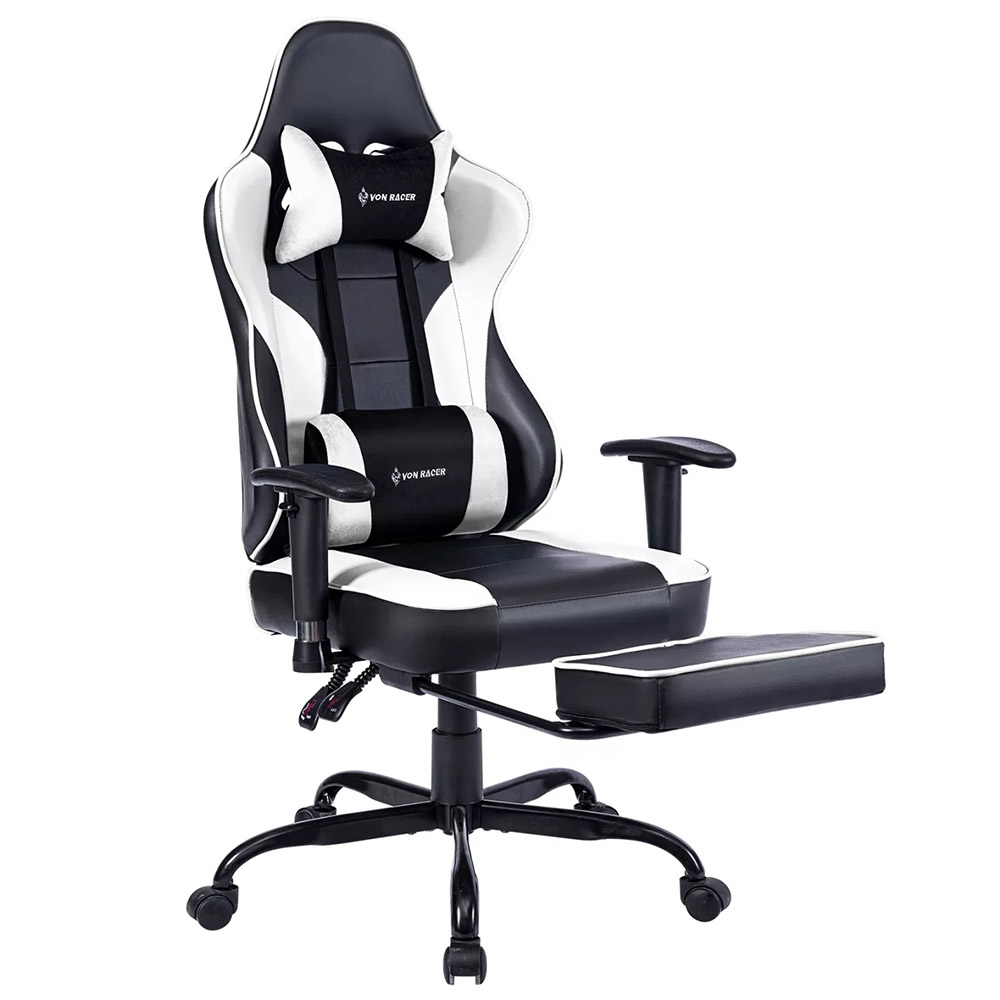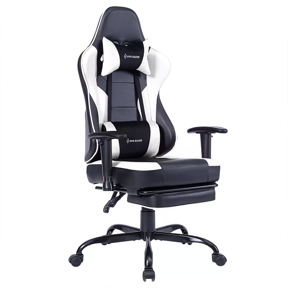 Kompjuterske stolice VON Racer 8280 u crnoj-beloj kombinaciji boja sa vibracionim lumbalnim masažerom.
